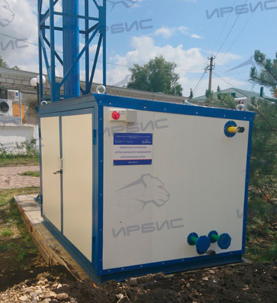 Такие котлы будут размещены в металлическом боксе с утепленными стенами. Размер короба может также быть подобран индивидуально. Бокс обеспечивает защиту оборудования от негативного воздействия окружающей среды и атмосферных осадков и позволяет эксплуатировать котлы при температуре от -45 до +40 градусов.