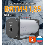 - жаротрубные котлы «Вятич 1,25»: двухходовые водогрейные котлы с реверсивной топкой, топочное пространство специально рассчитано для достижения наилучшего соотношения между объемом камеры сгорания и поверхностью теплообмена.